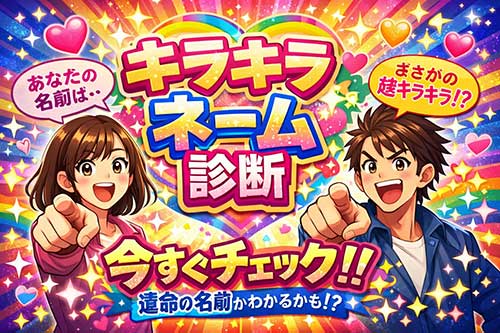 あなたの名前がどれくらい“キラキラネーム”なのかを診断します! 読み方・漢字の組み合わせ・珍しさなどを総合的にチェック!